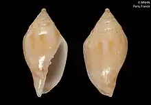 Shell of Volutomitra glabella (specimen at MNHN, Paris)