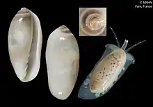 Shell and animal of Volvarina laurenti (holotype at MNHN, Paris)