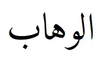Wahhab (Arabic: ٱلْوَهَّابُ, romanized: al-Wahhāb) is a name of God in Islam, meaning "the Bestower". It is also used as a personal name, as a short form of Abd al-Wahhab - the "Servant of the Bestower".[1]