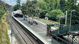 Wahroonga railway station is a heritage-listed railway station located on the North Shore line, serving the Sydney suburb of Wahroonga. The station is located in the Ku-ring-gai Council local government area of New South Wales, Australia. It is served by Sydney Trains T1 North Shore line services. It was built from 1890 to 1910 by E. Pritchard & Co., contractor (first 1890 line). It is also known as Wahroonga Railway Station group and Pearce's Corner; Noonan's Platform. The property was added to the New South Wales State Heritage Register on 2 April 1999.[2]