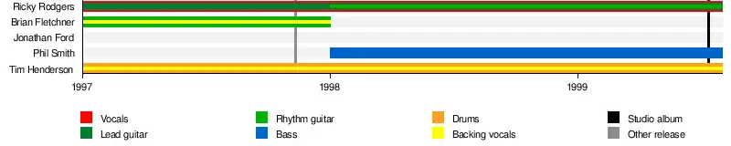 • Ricky Rodgers – vocals, lead guitar (1997–1999, 2015) (formerly of Fuse of Ire and Catechuman)