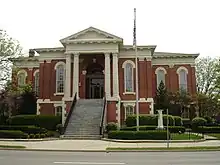 The Third District Appellate Court Building is found on the northeast corner of the square. The court building was constructed between 1857–60 and served as one of the Illinois State Supreme Court buildings for a decade.[2][6][7] In 1897, the state supreme courts at Ottawa, Mt. Vernon, and Springfield were consolidated into one in Springfield.[7] The court in Ottawa, one of five in the state of Illinois, played a role in drawing the Lincoln-Douglas Debate to the city.[2] The building, at 1004 Columbus Street in Ottawa, still serves as the Third District Appellate Court of Illinois.[8]