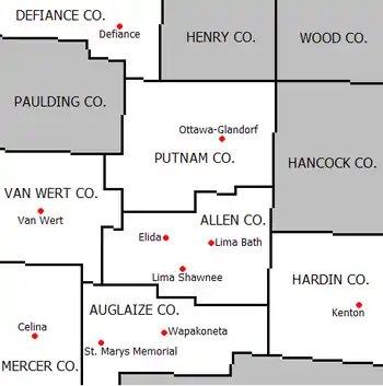 Centered in Lima, Ohio, the Western Buckeye League is an OHSAA athletic league located in northwest Ohio and includes schools in Allen, Auglaize, Defiance, Hardin, Mercer, Putnam, and Van Wert counties. The league's school district boundaries also include portions of Logan, Paulding, Shelby, and Wyandot counties. The WBL originally formed in 1936 and is one of the oldest high school conferences in the state. The Western Buckeye League currently awards championships in 13 Varsity sports: baseball, basketball, bowling, cross country, football, golf, soccer, softball, swimming, tennis, track, volleyball, and wrestling. An academic bowl tournament for the schools in the league began annually in 2004.