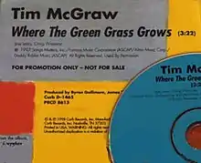 "Where the Green Grass Grows" is a song written by Jess Leary and Craig Wiseman, and recorded by American country music artist Tim McGraw. It was released on July 13, 1998, as the fifth single from McGraw's Everywhere album. The song reached number one on the Billboard Hot Country Singles & Tracks (now Hot Country Songs) chart and peaked at number seventy-nine on the Hot 100.[1] It also reached number one on the Canadian RPM Country Tracks chart.
