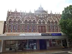 The White Horse Hotel is a two storeyed brick building on Toowoomba's main street, Ruthven Street. It was erected in several phases with major alterations c.1912, including a new facade and internal refurbishing, attributed to Toowoomba architects, James Marks and Sons.[1]