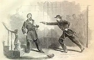 {{cite book}}: CS1 maint: location missing publisher (link) CS1 maint: multiple names: authors list (link) - ↑ Fry, James B., General (1885). Killed by a Brother Soldier: A Chapter in the History of the War. New York: G. P. Putnam's Sons. pp. 5–6. hdl:2027/yale.39002064227953.