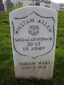 2. 1 2 "Medal of Honor recipients: Indian Wars Period - William Allen". United States Army Center of Military History. July 16, 2007. Archived from the original on August 3, 2013. Retrieved March 31, 2008.