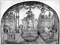 In the 19th century, the most important producer of tapestries in the world was the city of Aubusson, in France. It was there that Mr. Baumgarten found the Foussadier family who were taken to New York City to work in his company.[2] They had formerly worked at The Royal Windsor Tapestry Manufactory (1876–1890).[3] Antoine, Louis and Jean Foussadier handled the dyeing and loom work, whilst the females of the family, Madame Foussadier and her daughter Adrienne did all the needlework. By 1896 the factory had 40 artisans working full-time. Examples of Baumgarten Tapestries can be seen at the Metropolitan Museum of Art[2] and in the collections of the Vanderbilts, Rockefellers and Whitneys.