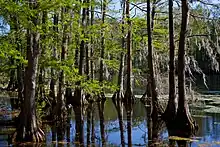 By mid-century, the churchyard of St. James Episcopal Church and other town cemeteries had become filled with graves. On November 16, 1853, a group of citizens, organized as "the Proprietors of the Wilmington Cemetery", was formed to develop a new cemetery. Sixty-five acres of land around Burnt Mill Creek were chosen as the site for what would be called Oakdale Cemetery. It was the first rural cemetery in North Carolina. The cemetery's first interment, on February 6, 1855, was six-year-old Annie deRosset.[43] Many remains from St. James churchyard were relocated to the new cemetery.