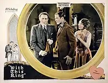 With This Ring is a 1925 American silent drama film directed by Fred Windemere and starring Alyce Mills, Forrest Stanley, and Lou Tellegen.[1] In America it was distributed by the independent outfit Preferred Pictures while its British release was originally to be handled by Vitagraph, before that company was acquired by Warner Bros. who distributed it on the British market in 1926.