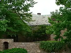 The building has stone wall and wrought iron fencing, and is central to the largest secret society compound on campus. The compound commands the most prominent location on campus beyond Harkness Tower, the very icon of Yale,[47] and the Memorial Quadrangle.
