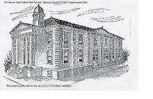 Woodlawn High School's early, main academic building. Construction began in 1907 and the building opened in 1909.