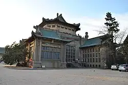 The predecessor of the Wuhan University Library was the Zi Qiang School founded by Zhang Zhidong.[2] In 1913, the National Wuchang Higher Normal College was founded, containing a small library. The library first appears in formal documents in 1917.[3] In 1927, the library changed its name to the National Wuhan University Library. At first there was only one book cataloger, about 3000 foreign language books, and a small number of Chinese books. In 1936 the collection grew to about 140,000 books. From 1928 to 1936, Yang Mingzhi, Pi Zongshi and Yang Duanliu successively served as its director.[4] The old library building on the top of Mount Shizi was built in 1935.[5]