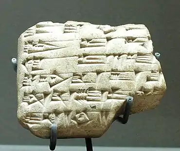 He then expanded west and claimed to have reached the Mediterranean,[2][3] however he later had to face a rebellion by the Banu-Yamina nomads who were centered at Tuttul, and the rebels were supported by Yamhad's king Sumu-Epuh, whose interests were threatened by the recently established alliance between Yahdun-Lim and Eshnunna.[4][2] Yahdun-Lim defeated the Yamina but an open war with Yamhad was avoided.[5]