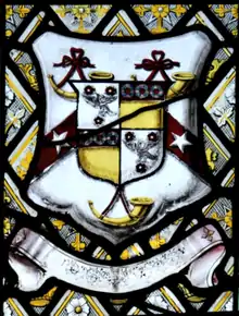 Arms of Rev. Thomas Hooper Morrison, detail from 1861 Eleanora Hammett memorial window, Yeo Vale Chapel, Alwington Church. [lower-alpha 3]