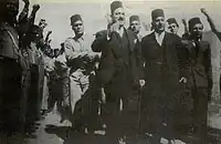 In late 1931, a committee of students headed by Ahmad Hussein formed the Piastre Plan, which was a drive to raise funds for developing Egyptian industry, using the funds to establish a local fez factory.[25][26] This was after discovering that the famous Egyptian headdress was produced in a foreign country. Hussein had been a supporter of the Liberal Constitutionalists leader Muhammed Mahmud during his last year in secondary school.[27] One of the principles of the party was buying only Egyptian-made products.[28] The party was formed on the 12th of October, 1933 as a nationalist party with "religious elements" by Ahmed Hussein. Its aim was the pursue a more nationalist anti-British policy than the established Egyptian parties. Its name was similar to the nationalist Young Italy and Young Turks parties.[29] Young Egypt emerged as a student organization that existed outside of the control of the traditional Egyptian parties.[30]