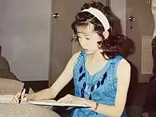 Yukiko Iwai (岩井 由紀子, Iwai Yukiko), also known by the nickname Yūyu (ゆうゆ, Yūyu), is a Japanese singer and actress born 26 May 1968 in Yokohama, Kanagawa Prefecture, Japan.[1][2] Iwai was a member of the all-girl pop group Onyanko Club (from 21 June 1985 until 31 August 1987), and she was the shortest of all the members at 150 centimetres (4 ft 11 in).[1][3][4][5] She was also half of the pop group Ushiroyubi Sasaregumi, a spin-off group of Onyanko Club.[1][3][4] She graduated from Kaetsu Women's Junior High and High School (嘉悦女子高校) (now Kaetsu Ariake Junior High and High School), but left Kaetsu Women's Junior College (嘉悦女子短大) (now Kaetsu University Junior College) before she finished.[6] She has an older sister, Akiko, who is four years older than her and is said to look just like her.[7]