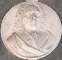Zachary Hamlyn died on 22 June 1759, aged 82. As requested in his will, he was buried in the chancel of the parish church of Wolfardisworthy,[26] but his mural monument is in Clovelly Church.[27] A fine painting of him by Joseph Highmore (1692–1780) was destroyed in the fire at Clovelly Court in 1789,[28] but an engraving of it (but possibly of his friend the author Samuel Richardson) by James MacArdell (c.1729–1765) exists in the National Portrait Gallery.[29] A relief sculpted portrait bust exists on his mural monument in Clovelly Church.