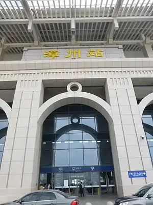 Zhangzhou railway station is the main train station of the Zhangzhou metropolitan area in China's Fujian Province. The station is located in Hongtang Village (洪塘村) of Longhai District, about 10 km south of downtown Zhangzhou.[1] It is located on the common section of the Longxia Railway (Longyan-Xiamen; opened in mid-2012) and the Xiashen Railway (Xiamen-Shenzhen Railway; opened at the end of 2013).
