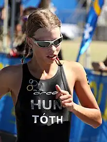 Until 2008, Tóth represented the club ORTRI situated in Oroszlány, not far from her hometown Tata. In 2009, Tóth joined the small Kropkó Triatlon Club,[3] directed by the Hungarian triathlete and several times ironman winner Péter Kropkó. From 2010 onwards, Toth has represented to TVK Mali Triatlon Klub located in Tiszaújváros.